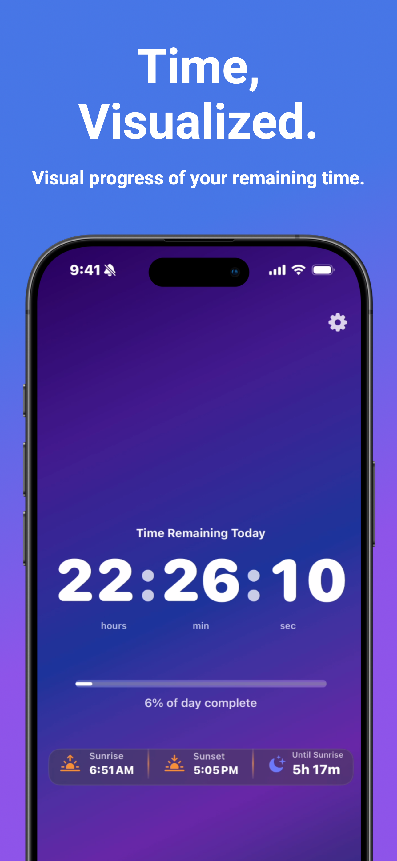 Visualize your day with fluid, solar-aware gradients and a clean, distraction-free countdown. Focus on what matter